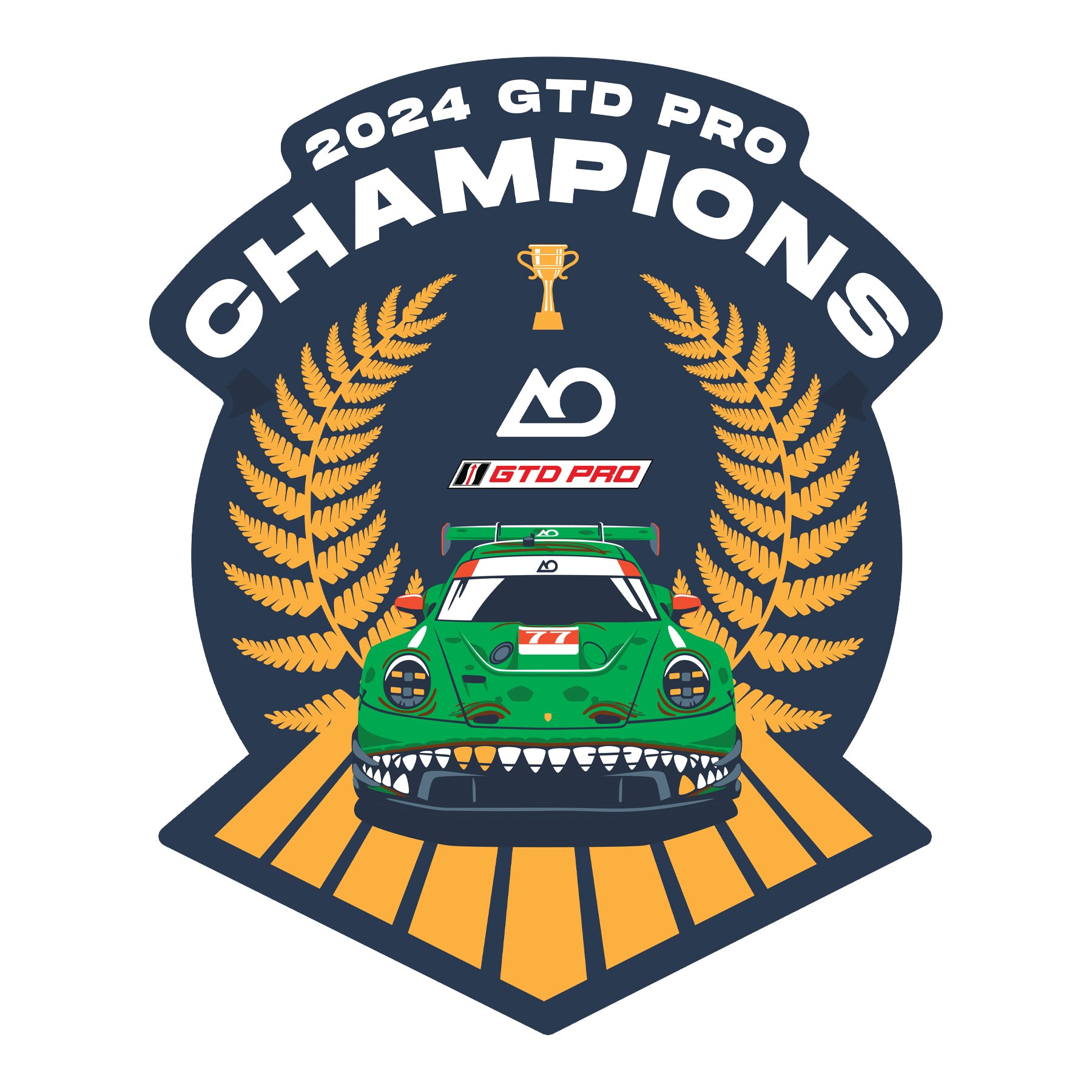 Celebrate AO Racing's 2024 IMSA WeatherTech GTD PRO championship victory with this glossy and vibrant sticker. This design features Rexy, the iconic Porsche 911 GT3 Rawr, complete with the signature toothy grin, surrounded by gold laurel wreaths and the championship trophy. The UV protective lamination leaves the sticker with a shiny appearance, protecting it for applications outdoors or on often-washed surfaces.