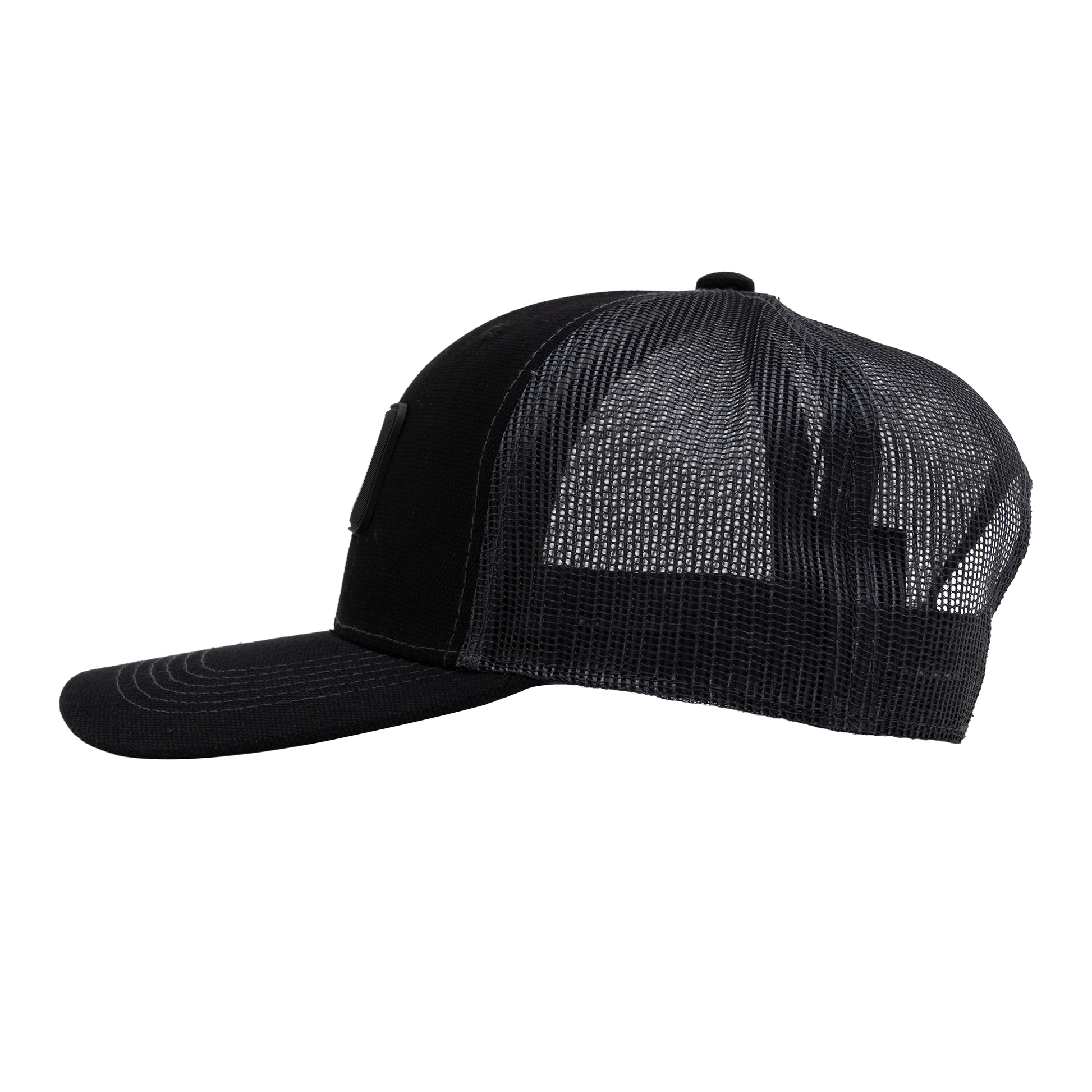 Elevate your style with the sleek AO Logo Hat, designed for both function and fashion. This premium hat features a durable black duck canvas front paired with a breathable grey trucker mesh back for optimal comfort. The contrast stitching, done in grey thread on the black canvas, adds a touch of sophistication to the rugged design.