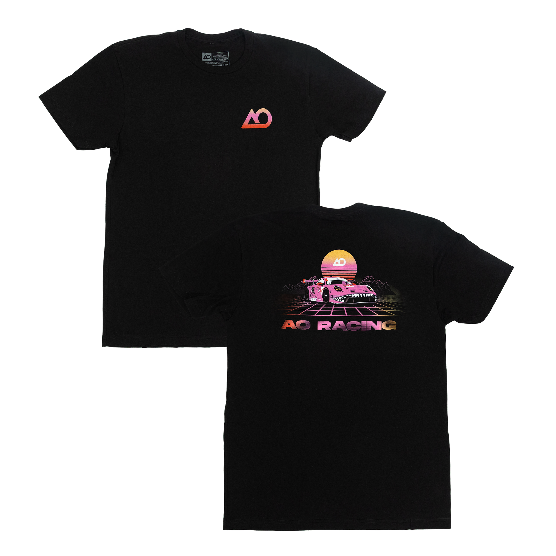 Whether you're at the track or out on the town, this 80s-inspired tech noir tee lets you show your AO Racing pride with a touch of nostalgic flair! Showcasing Roxy, the prehistoric Porsche 911 GT3 Rawr, this shirt mixes modern and retro in style!