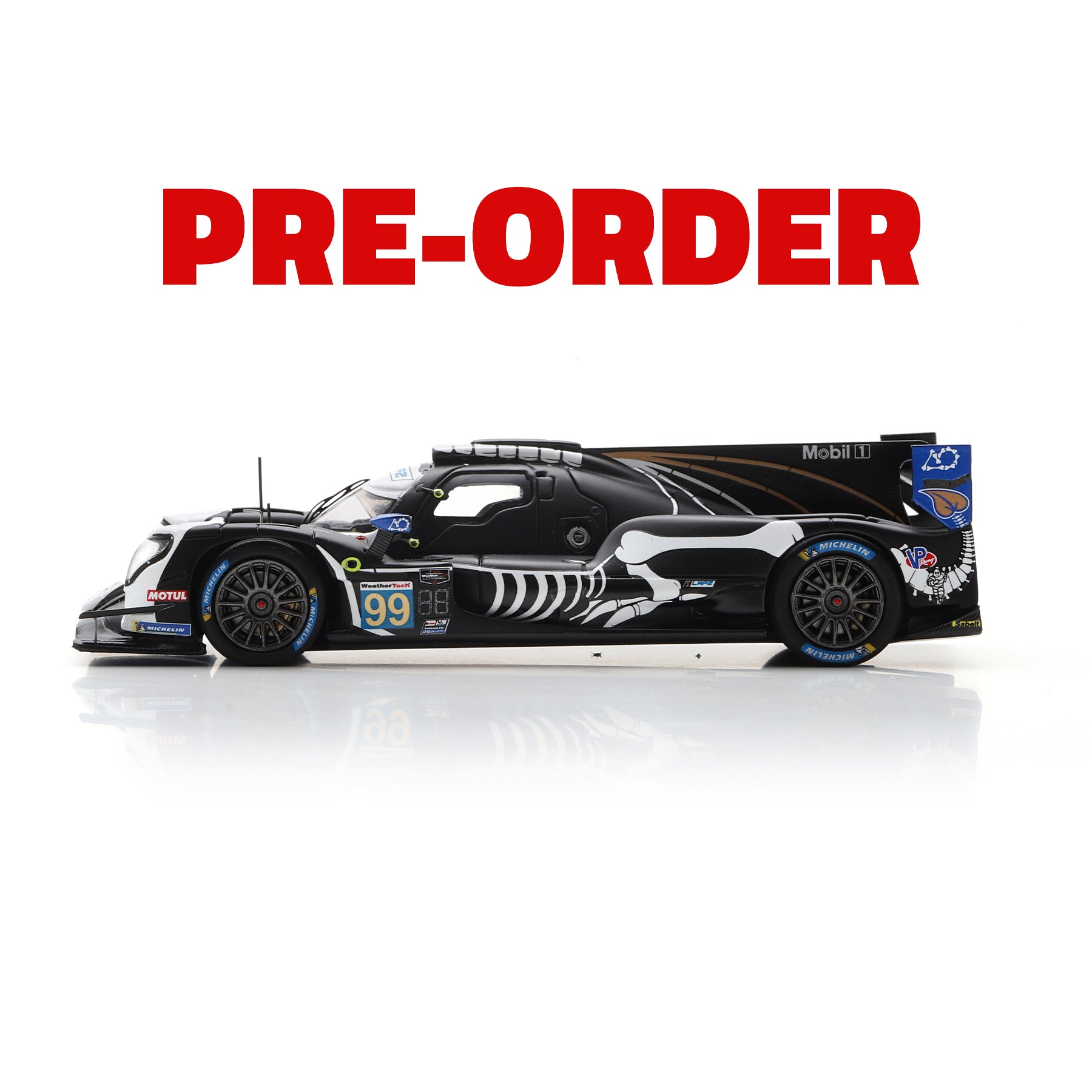AO Racing’s fierce dragon, Spike, gets a spooky makeover for the 2025 running of Petit Le Mans! This special-edition 1:43 scale diecast replicates the team’s Halloween-themed livery, featuring bold black-and-white skeleton graphics that stretch across the LMP2’s sleek bodywork. From the dragon spine running down the top to the bone-detailed sides and wings, this collectible perfectly captures every detail. This limited piece is a must-have. Don't let it fly away!